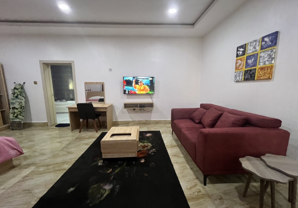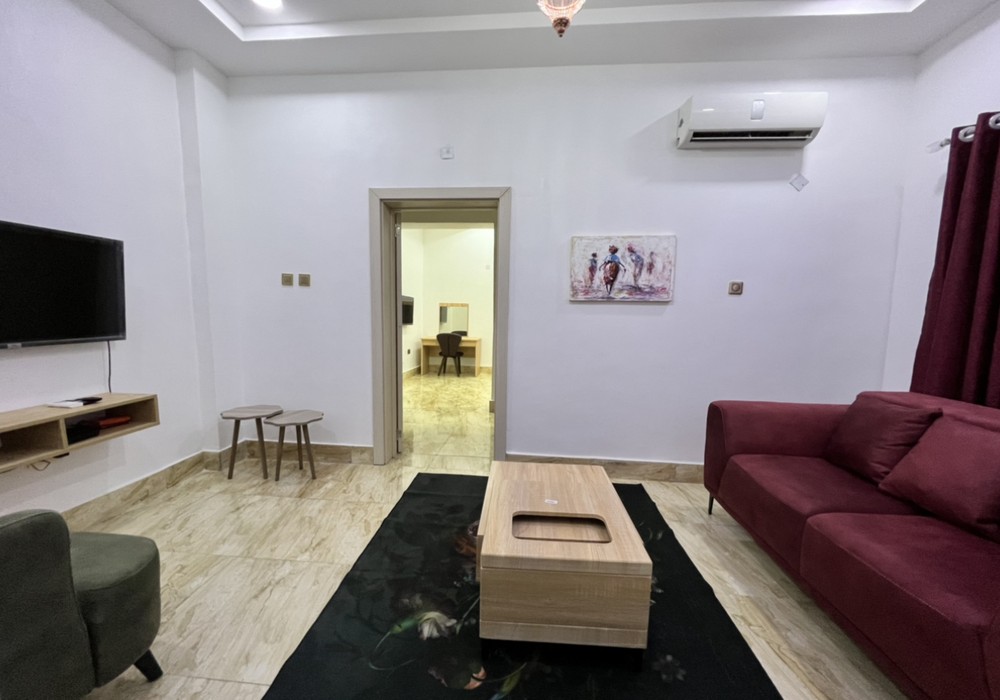 Centrally located in a clean & Quite street, a walk distance to supermarket/ pharmacies and 7mins drive to jabi lake mall (that has cinemas, eateries, shoprite, game etc)
